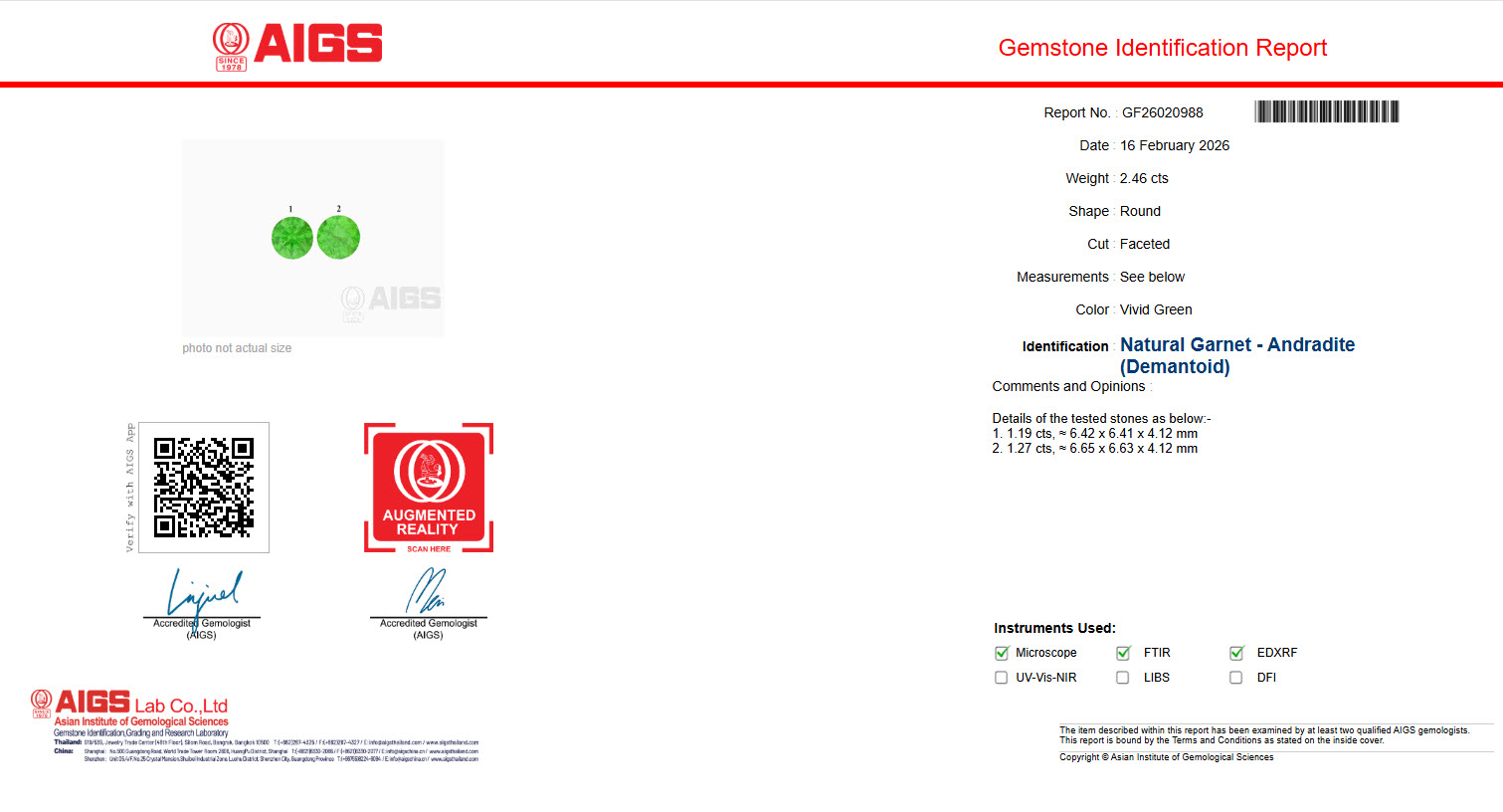 1. Weight : 1.27 cts( size: 6.42 x 6.41 x 4.13 mm)